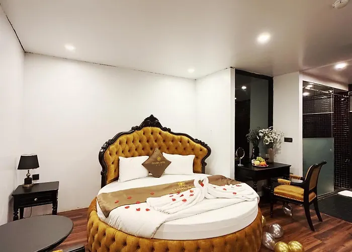 都市の景色を見渡す2つ星Golden Hotel ハノイ市は、ホアン キエム湖から徒歩で25分以内の場所に位置しています。 駐車場もあります。